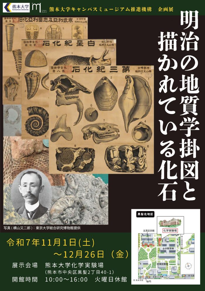 このたび、熊本大学キャンパスミュージアム推進機構では、企画展「明治の地質学掛図と描かれている化石」を開催…