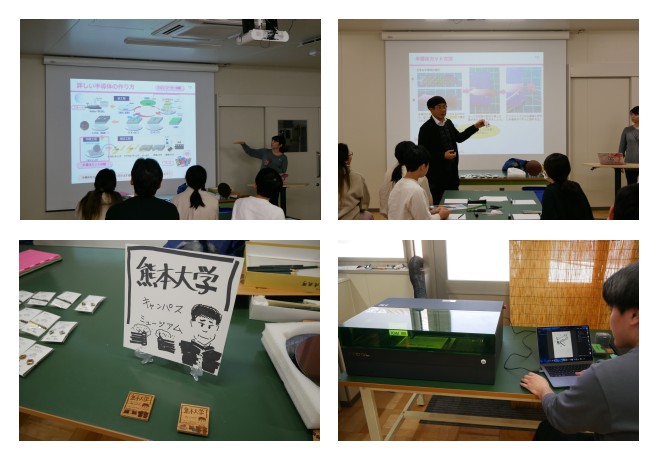 また、会期中には、「くまだいSDGs事業 熊大×東大ワークショップ」も行いました。半導体と熊大の木を素材とした工作と、半導体とは?文化的処方とは?それぞれの取り組みの講義も行い、熊本大学が進めている研究課題をワークショップを通じて知っていただきました。