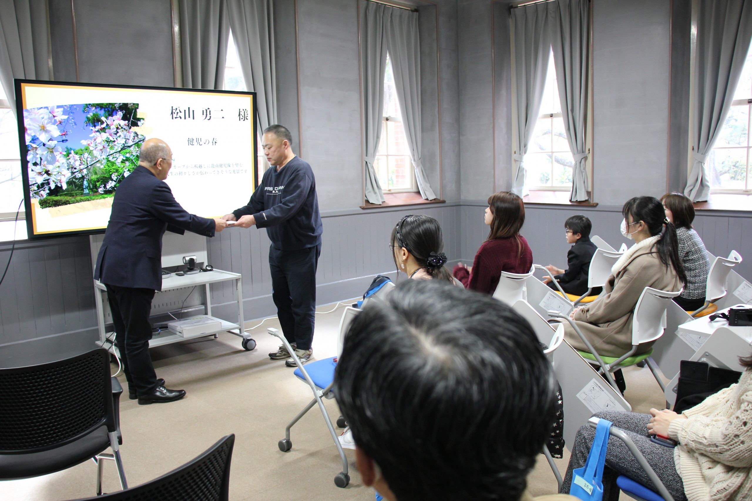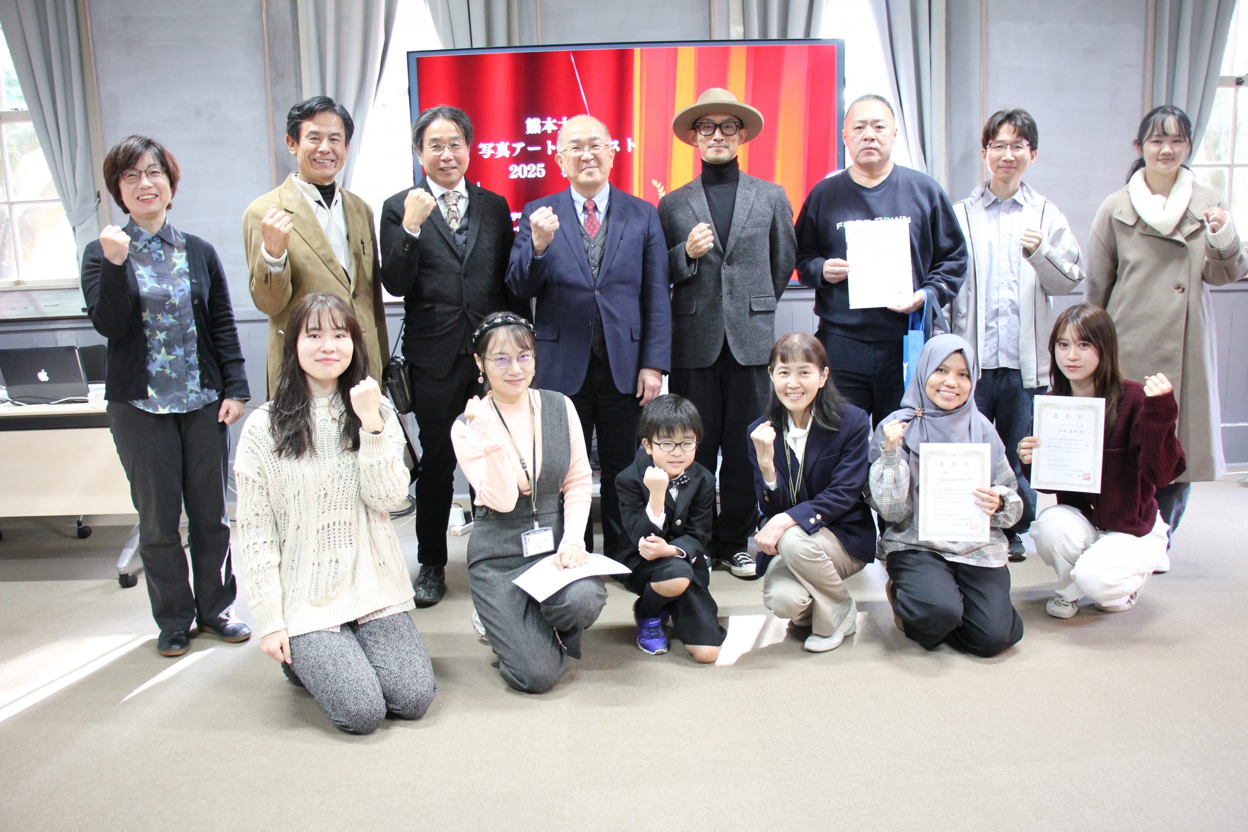 令和7年12月19日、五高記念館にて「写真アートコンテスト2025」の表彰式が行われ、当日出席された受賞者12名の方に、水元機構長より表彰状が贈呈されました。その後の懇談会では、受賞作品を鑑賞しながら、それぞれ作品に込めた意図や撮影時に工夫したポイントについて発表していただき、写真を通じて新たな視点や発想を共有する有意義な時間となりました。 ※現在、五高記念館2階展示室にて、受賞作品15点を展示しております。ぜひご覧ください。